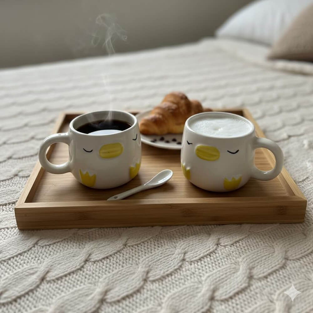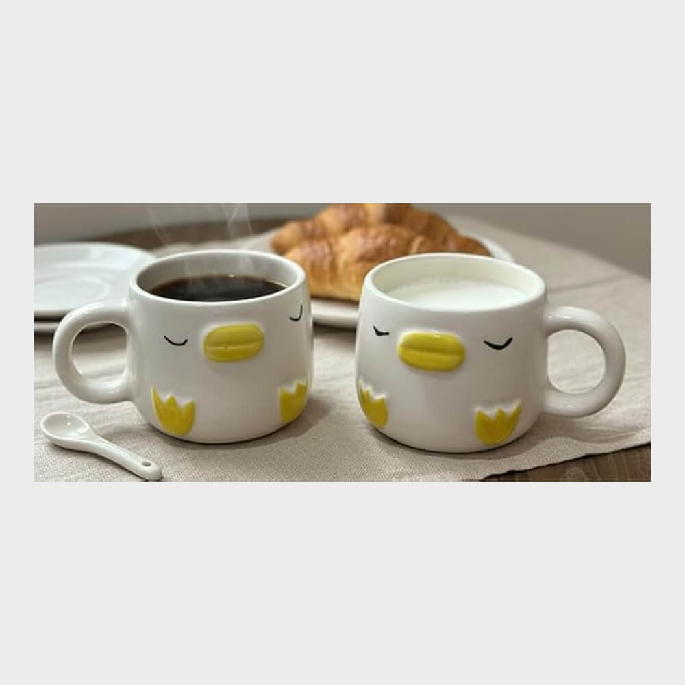 Sleepy Chick Yellow Coffee Mug| Pack of 2 - Beige